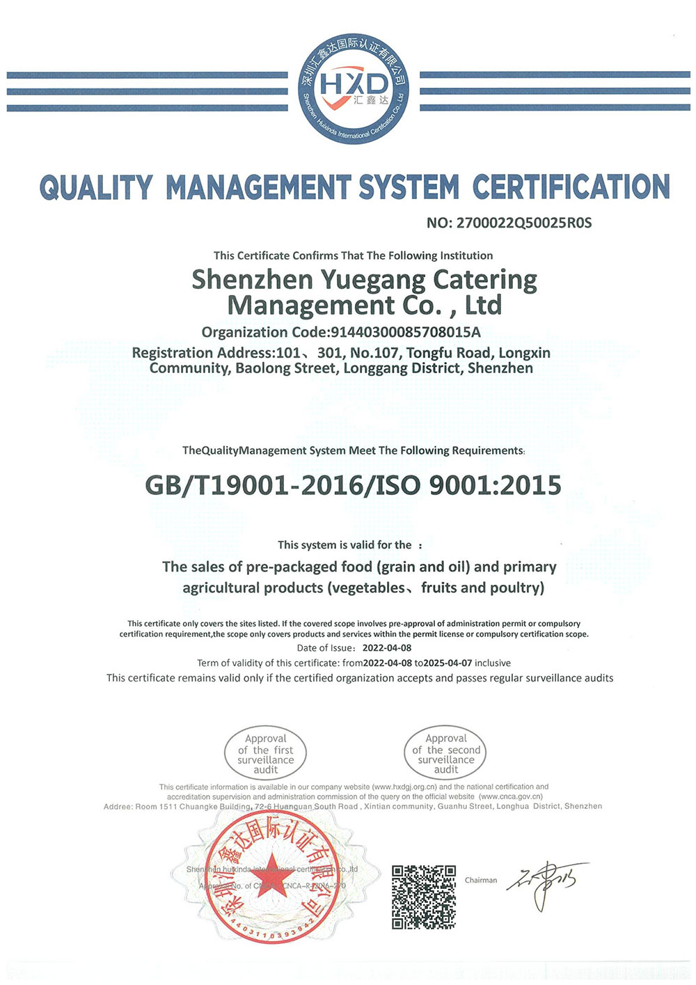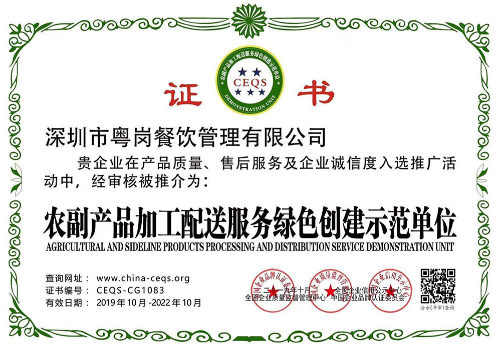 深圳市粵崗餐飲管理有限公司,是一家集蔬菜種植和農(nóng)副產(chǎn)品配送為一體的專業(yè)型餐飲公司,主要為學(xué)校、工廠企事業(yè)機(jī)關(guān)單位提供蔬菜和農(nóng)副產(chǎn)品配送服務(wù)。公司自成立以來始終以質(zhì)優(yōu)價(jià)廉、服務(wù)至上為原則,嚴(yán)格按照ISO:9001國(guó)際標(biāo)準(zhǔn)體系進(jìn)行管理。同時(shí)建立了行業(yè)領(lǐng)先的配送中心、大型冷庫(kù)和保鮮庫(kù)、檢測(cè)中心以及專業(yè)化的配送團(tuán)隊(duì),能長(zhǎng)期安全、穩(wěn)定、準(zhǔn)時(shí)的配送貨物。我們所有蔬菜均經(jīng)過初步加工、無黃葉,無泥沙等雜質(zhì),利用率達(dá)97%以上...保障向用戶提供的各類食材的衛(wèi)生和質(zhì)量。公司為了適應(yīng)不同客戶的需求,配有專業(yè)人員和配送車輛,實(shí)行“一對(duì)一”的服務(wù)體制,一心一意的為客戶服務(wù),秉承粵崗誠(chéng)實(shí)守信、服務(wù)第一、客戶至上的服務(wù)標(biāo)準(zhǔn),真正讓客戶花最少的錢吃最好的菜。粵崗多年來何以欣欣向榮,因?yàn)槲覀冎乐挥杏掠趽?dān)當(dāng)責(zé)任,才能承擔(dān)更大的責(zé)任,就是因?yàn)?粵崗員工貫徹公司態(tài)度決定一切、細(xì)節(jié)決定成敗的真理,從質(zhì)量抓起,從服務(wù)做起,才創(chuàng)造了如今的規(guī)模化供應(yīng)、統(tǒng)一性配送、專業(yè)化服務(wù)的粵崗。